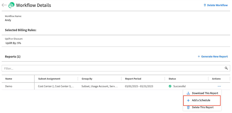 Click the report you want and select Add a Schedule. The Schedule Workflow window opens.